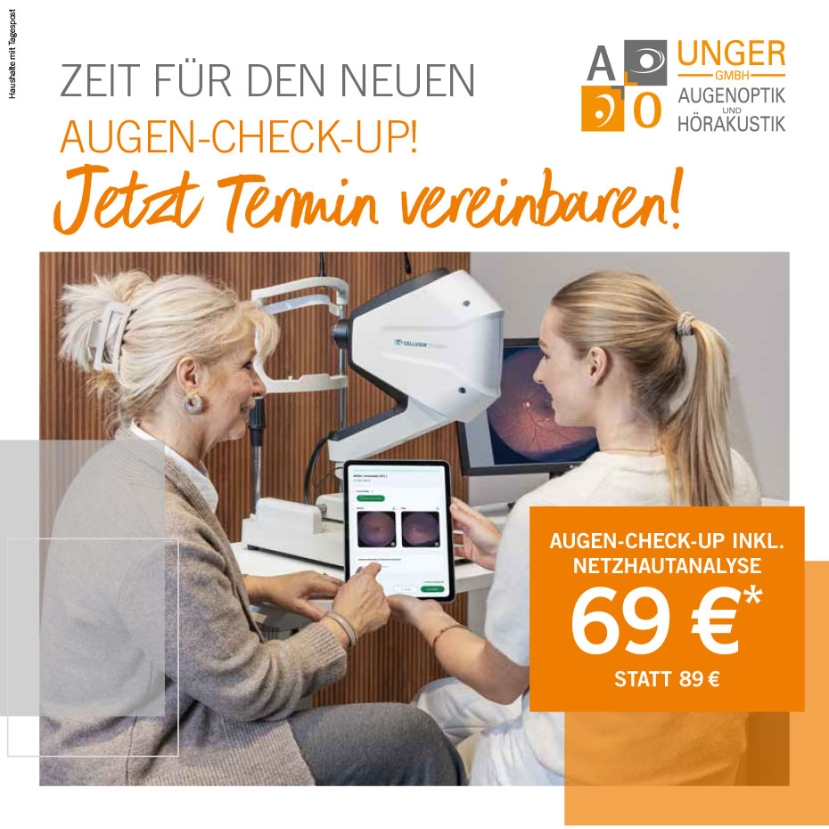 Unger Augenoptik und Hörakustik in Teutschenthal, Braunsbedra und Sangerhausen bietet Ihnen persönliche Beratung und modernste Messmethoden für perfektes Sehen und Hören. Entdecken Sie unsere große Auswahl an Markenbrillen, Kontaktlinsen und Hörgeräten.